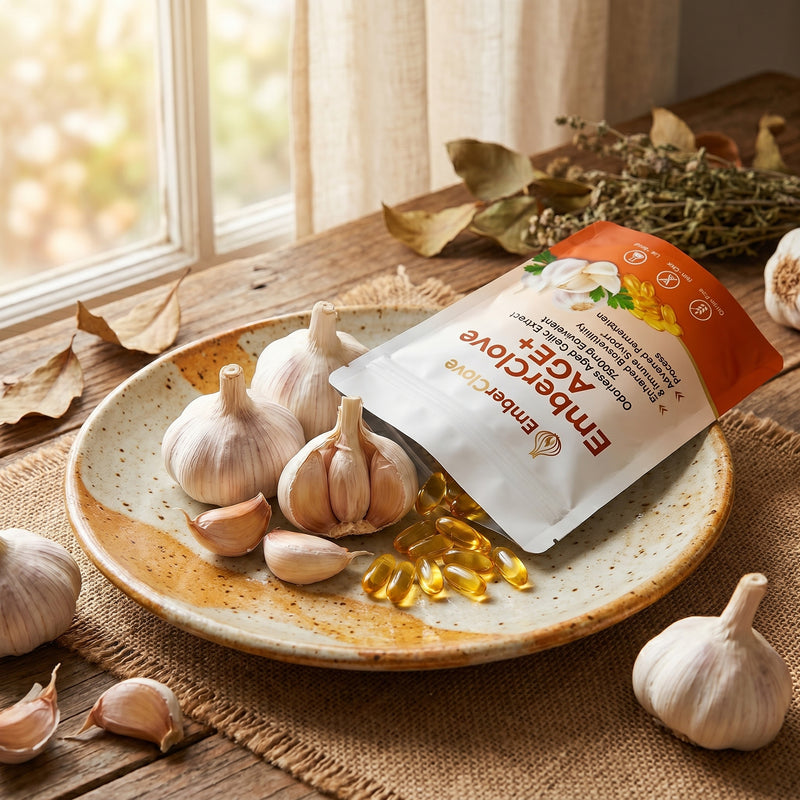 EmberClove uses odorless, slow-aged garlic extract crafted for everyday heart, immune, and antioxidant support — grounded in decades of clinical research.
